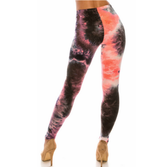 Buttery Smooth Coral Tie Dye Regular and High Wasted Leggings