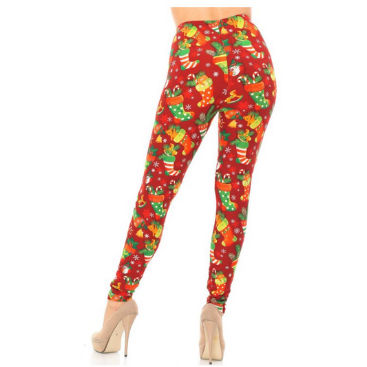 Buttery Smooth Ruby Red Christmas Stocking Leggings