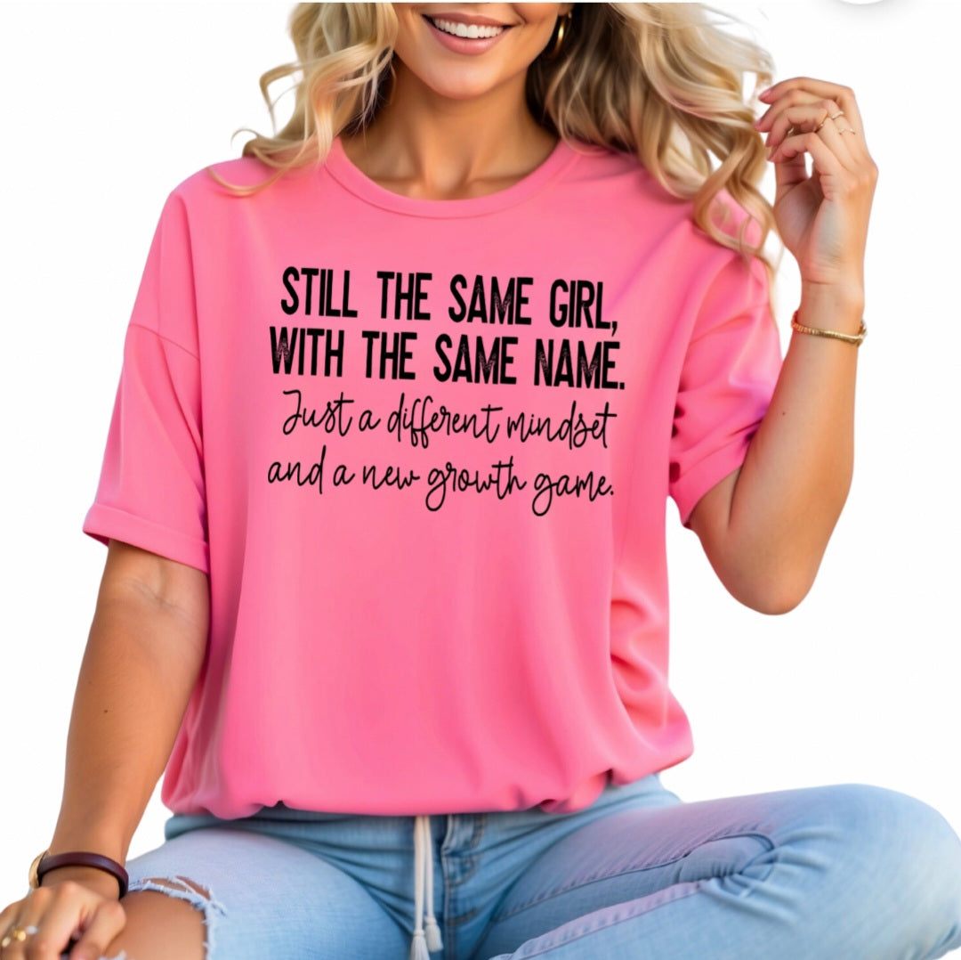 Embrace a new mindset and experience personal growth with our Still The Same Girl Shirt. Made with quality screenprinting, this shirt is a reminder to stay true to yourself and continuously evolve. Become the best version of yourself with this inspiring shirt.